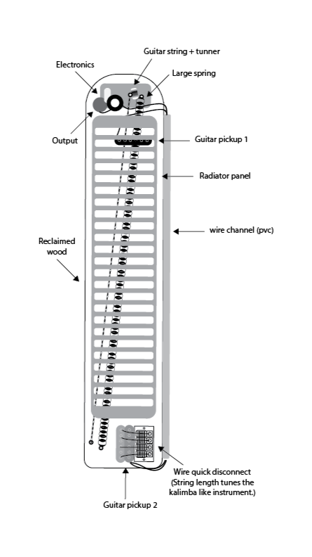 Salvakalimba is an experimental found-object instrument built from junkyard materials, salvaged guitar components, and domestic hardware, reframing waste as an expressive sound-making system.